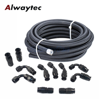 AN10ท่อยางยาว5เมตรชุดฟิตติ้งท่อน้ำมันเชื้อเพลิงแบบถักสแตนเลสพร้อมปลายท่อหมุน10ชิ้น