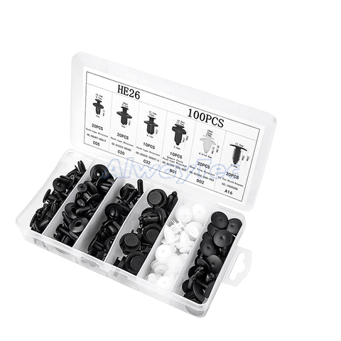 100 יחידות מהדקים לרכב, מסמרות פלסטיק, 6 גדלים פופולריים של פגושים קבועים לגוף לרכב וחלקי חילוף